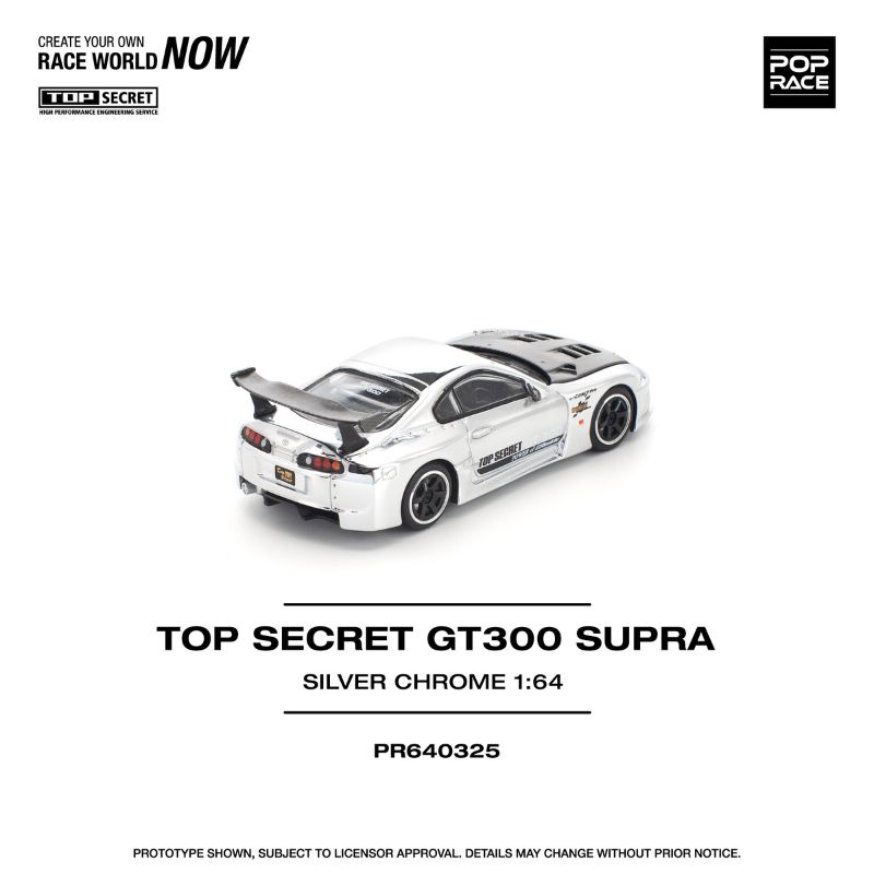 Item included in the package– 1 Qty of Pop Race Top Secret GT300 Supra Silver Chrome